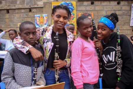 Celine Akumu with her clarinet students.